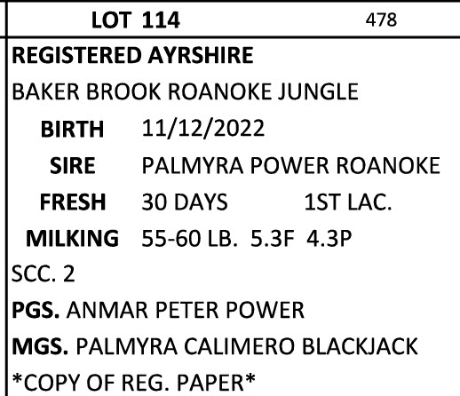 BRUBACKER'S NOVEMBER Monthly Production Sale