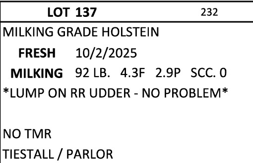 BRUBACKER'S NOVEMBER Monthly Production Sale