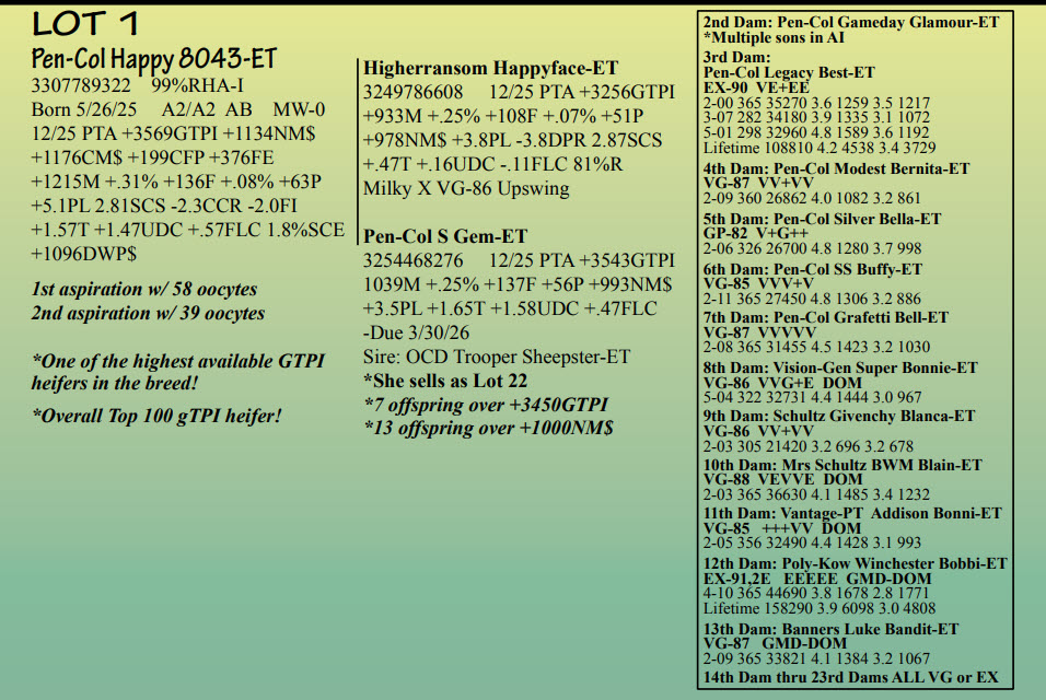 Offering the Genetic Leaders of the Present & Future for Type, Production,