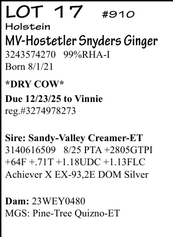 Hostetler Dairy Dispersal and Kish Monthly Dairy Sale