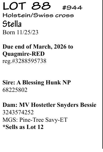 Hostetler Dairy Dispersal and Kish Monthly Dairy Sale