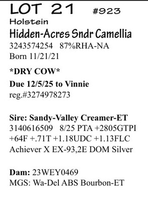 Hostetler Dairy Dispersal and Kish Monthly Dairy Sale