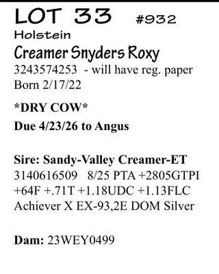 Offering the Genetic Leaders of the Present & Future for Type, Production, & Components! Many sell from World famous All-Am show winning families! No minimums! No reserves!