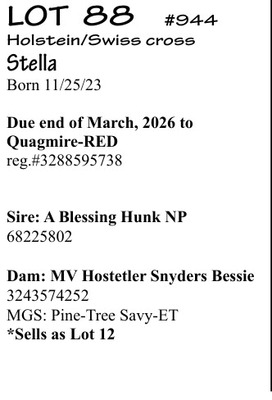 Hostetler Dairy Dispersal and Kish Monthly Dairy Sale