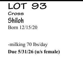 Offering the Genetic Leaders of the Present & Future for Type, Production, & Components! Many sell from World famous All-Am show winning families! No minimums! No reserves!