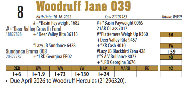 Birth Date: 10-16-2022 Cow 21101183 Tattoo: W039