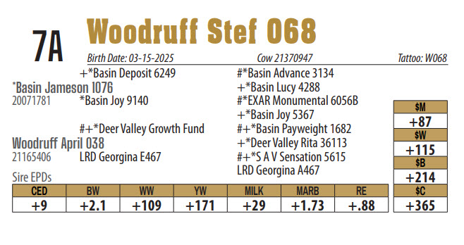 Birth Date: 03-15-2025 Cow 21370947 Tattoo: W068
