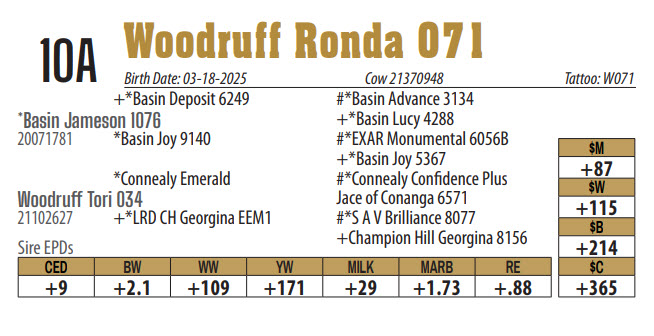 Birth Date: 03-18-2025 Cow 21370948 Tattoo: W071