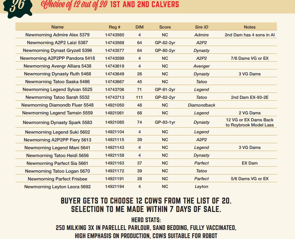 BUYER GETS TO CHOOSE 12 COWS FROM THE LIST OF 20.