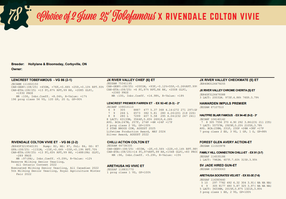 Choice of 2 June 25' Tobefamous X RIVENDALE COLTON VIVIE