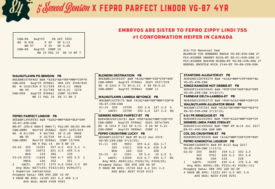 Sexed Benson X FEPRO PARFECT LINDOR VG-87 4YR