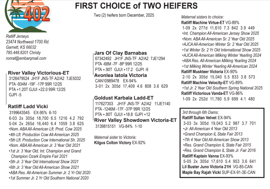 Two (2) heifers born December, 2025