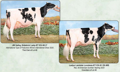 NY Holstein Convention ET Sale 6301 NY-298, East Syracuse NY, 13057 Live lots - IVF Sessions - Embryos - Elite Choices Contact Agent: Catalog | Terms of Auction Download CATALOG Download UPDATES ISSUU CATALOG LINK Catalog | Terms Download CATALOG Download UPDATES ISSUU CATALOG LINK All Items (53) No Category (53) Categories All Items (53) No Category (53) Search Item #: Keyword: Search Catalog Item #: Keyword: 20 items per page 50 items per page 100 items per page Go to page #: 1 , 2 , 3 #38 – DELTA LAMBDA X LOVEBUG CHOICE A) REYNCREST DL LOVEME-ET 840 3309757562 Born September 2, 2025 B) REYNCREST DL LOVEHER-ET 840 3309757563 Born September 2, 2025 C) REYNCREST DL LOVEHIM-ET 840 3309757564 Born September 2, 2025 Location: 6301 NY-298, East Syracuse NY, 13057 More Info / Bid Now Track this Item Sold High Bid: $2,900.00 – #1056 #38 – DELTA LAMBDA X LOVEBUG CHOICE Sold High Bid: $2,900 More Details More Info / Bid Track Item A) REYNCREST DL LOVEME-ET 840 3309757562 Born September 2, 2025 B) REYNCREST DL LOVEHER-ET 840 3309757563 Born September 2, 2025 C) REYNCREST DL LOVEHIM-ET 840 3309757564 Born September 2, 2025 Location: 6301 NY-298, East Syracuse NY, 13057 #39 – HINDSIGHT X ADDIE RED CHOICE Three (3) female pregnancies due June 1, 2026 Location: 6301 NY-298, East Syracuse NY, 13057 More Info / Bid Now Track this Item Sold High Bid: $3,600.00 – #500 #39 – HINDSIGHT X ADDIE RED CHOICE Sold High Bid: $3,600 More Details More Info / Bid Track Item Three (3) female pregnancies due June 1, 2026 Location: 6301 NY-298, East Syracuse NY, 13057 #40 – PALDWYN X JOYFUL PP RED CHOICE Three (3) female pregnancies due March 1, 2026 Selection to be made by June 1, 2026 Location: 6301 NY-298, East Syracuse NY, 13057 More Info / Bid Now Track this Item Sold High Bid: $2,400.00 – #500 #40 – PALDWYN X JOYFUL PP RED CHOICE Sold High Bid: $2,400 More Details More Info / Bid Track Item Three (3) female pregnancies due March 1, 2026 Selection to be made by June 1, 2026 Location: 6301 NY-298, East Syracuse NY, 13057 #41 – AUDACIOUS X AZOOZOO EMBRYOS (4) #1 IVF embryos from sexed semen Qualified for export to EU, UK & CAN Location: Sunshine Genetics, Whitewater, WI Location: 6301 NY-298, East Syracuse NY, 13057 More Info / Bid Now Track this Item Sold High Bid: $500.00 – #1117 Auction Type: Quantity x Price Quantity: 4 #41 – AUDACIOUS X AZOOZOO EMBRYOS Quantity x PriceQuantity: 4 Sold High Bid: $500 More Details More Info / Bid Track Item (4) #1 IVF embryos from sexed semen Qualified for export to EU, UK & CAN Location: Sunshine Genetics, Whitewater, WI Location: 6301 NY-298, East Syracuse NY, 13057 #42 – DAX X RAINBOE RED EMBRYOS (3) #1 and (2) #2 IVF embryos from sexed semen Location: 6301 NY-298, East Syracuse NY, 13057 More Info / Bid Now Track this Item Sold High Bid: $450.00 – #500 Auction Type: Quantity x Price Quantity: 5 #42 – DAX X RAINBOE RED EMBRYOS Quantity x PriceQuantity: 5 Sold High Bid: $450 More Details More Info / Bid Track Item (3) #1 and (2) #2 IVF embryos from sexed semen Location: 6301 NY-298, East Syracuse NY, 13057 #43 – DAX X SOPHIA RED EMBRYOS (2) #1 IVF embryos from sexed semen S: Haveitall Heatwv Dax-Red-ET (2) #2 IVF embryos from sexed semen S: OCD Rebel Spin-Red-ET Qualify for export to EU & AU Location: Trans Ova, MD Location: 6301 NY-298, East Syracuse NY, 13057 More Info / Bid Now Track this Item Sold High Bid: $375.00 – #1060 Auction Type: Quantity x Price Quantity: 4 #43 – DAX X SOPHIA RED EMBRYOS Quantity x PriceQuantity: 4 Sold High Bid: $375 More Details More Info / Bid Track Item (2) #1 IVF embryos from sexed semen S: Haveitall Heatwv Dax-Red-ET (2) #2 IVF embryos from sexed semen S: OCD Rebel Spin-Red-ET Qualify for export to EU & AU Location: Trans Ova, MD Location: 6301 NY-298, East Syracuse NY, 13057 #44 – AUDACIOUS X ARIKI RED EMBRYOS (5) #1 IVF embryos from sexed semen Qualify for export to UK & CAN Location: Trans Ova, Madison, WI Location: 6301 NY-298, East Syracuse NY, 13057 More Info / Bid Now Track this Item Sold High Bid: $525.00 – #1117 Auction Type: Quantity x Price Quantity: 5 #44 – AUDACIOUS X ARIKI RED EMBRYOS Quantity x PriceQuantity: 5 Sold High Bid: $525 More Details More Info / Bid Track Item (5) #1 IVF embryos from sexed semen Qualify for export to UK & CAN Location: Trans Ova, Madison, WI Location: 6301 NY-298, East Syracuse NY, 13057 #45 – UNSTOPABULL X RIVER RED EMBRYOS (7) #1 female IVF embryos Location: Fort Ann, NY Location: 6301 NY-298, East Syracuse NY, 13057 More Info / Bid Now Track this Item Sold High Bid: $550.00 – #1106 Auction Type: Quantity x Price Quantity: 7 #45 – UNSTOPABULL X RIVER RED EMBRYOS Quantity x PriceQuantity: 7 Sold High Bid: $550 More Details More Info / Bid Track Item (7) #1 female IVF embryos Location: Fort Ann, NY Location: 6301 NY-298, East Syracuse NY, 13057 #46 – DAX X RAINDROPE RED EMBRYOS (5) #1 IVF embryos from sexed semen Location: Trans Ova, WI Location: 6301 NY-298, East Syracuse NY, 13057 More Info / Bid Now Track this Item Sold High Bid: $400.00 – #1054 Auction Type: Quantity x Price Quantity: 5 #46 – DAX X RAINDROPE RED EMBRYOS Quantity x PriceQuantity: 5 Sold High Bid: $400 More Details More Info / Bid Track Item (5) #1 IVF embryos from sexed semen Location: Trans Ova, WI Location: 6301 NY-298, East Syracuse NY, 13057 #47 – HAVENOFEAR X 2463 EMBRYOS (3) #1 female IVF embryos from sexed semen Location: Trans Ova, MD Location: 6301 NY-298, East Syracuse NY, 13057 More Info / Bid Now Track this Item Sold High Bid: $775.00 – #1138 Auction Type: Quantity x Price Quantity: 3 #47 – HAVENOFEAR X 2463 EMBRYOS Quantity x PriceQuantity: 3 Sold High Bid: $775 More Details More Info / Bid Track Item (3) #1 female IVF embryos from sexed semen Location: Trans Ova, MD Location: 6301 NY-298, East Syracuse NY, 13057 #48 – BARKEEP X LEENA EMBYROS (4) #1 conventional embryos from sexed semen Qualified for export to EU, UK & CAN Location: Sunshine Genetics, Whitew