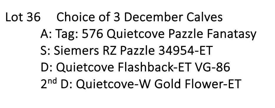 Approximately 40 heifers, embryos, and cows will sell out of show winning cow families. This auction will utilize an auto-extend, soft closing closing. With this feature, the bidding will close on ALL lots at the same time (Race Horse Style) Bidding will start to close from 8 pm to 8:02 if any lots receive a bid after 8:01 they will extend bidding on all lots for an additional 2 minutes. Once 2 minutes have lapsed without any bidding activity, then all lots will close.