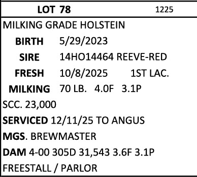 BRUBACKER'S DECEMBER Monthly Production Sale