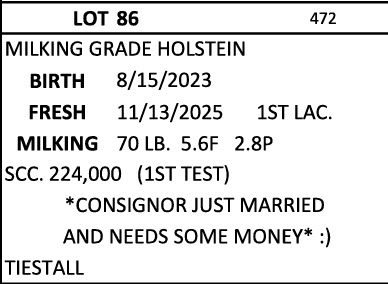BRUBACKER'S DECEMBER Monthly Production Sale