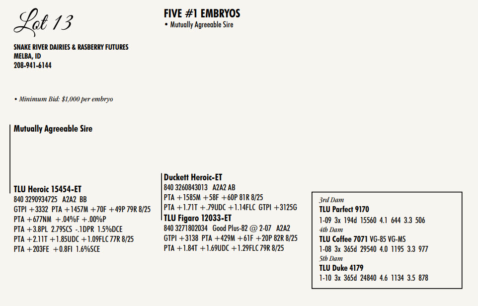 -Selling price is per Embryo