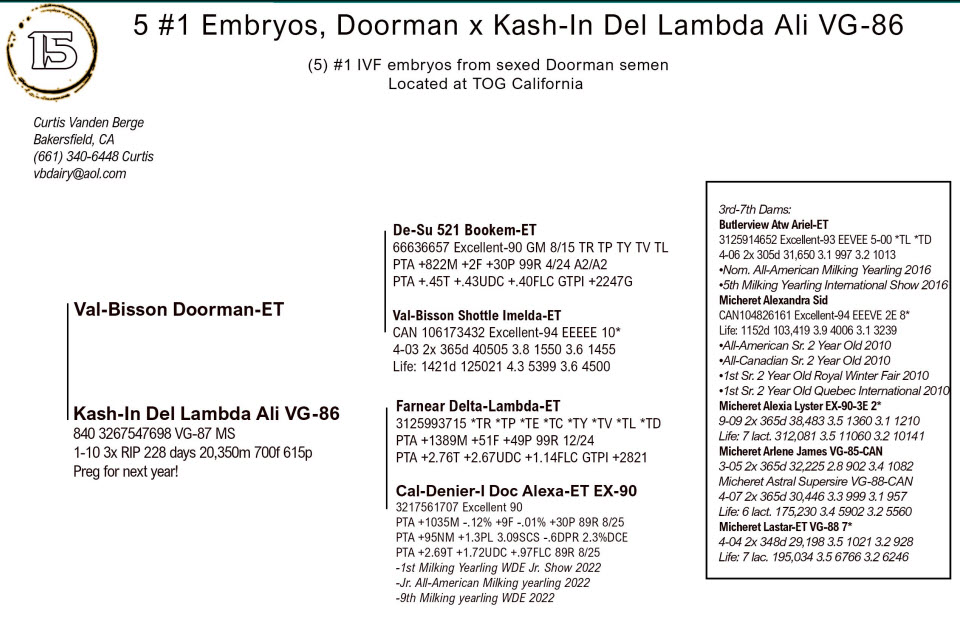 (5) #1 IVF embryos from sexed Doorman semen