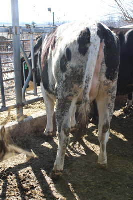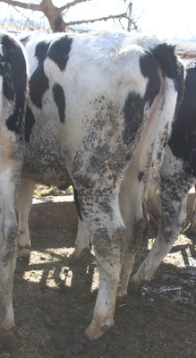 BREED:  HOL INFO:   REPRO:  PREG. 6 MO. TO BLACK ANGUS BULL SIRE:  HORSTDALE LAMBDA CASTLE DOB: 04/02/24