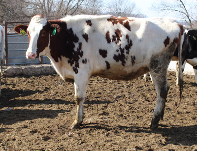 BREED:  HOL INFO:   REPRO:  PREG. 6 1/2 MO. TO BLACK ANGUS BULL SIRE:  HORSTDALE LAMBDA CASTLE DOB: 12/20/23
