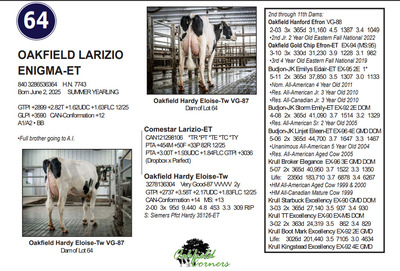 Spring Sensation Sale 3962 Batavia-Elba Townline Rd, Oakfield NY, 14125 Live lots - IVF Sessions - Embryos - Elite Choices Contact Agent: Catalog | Terms of Auction Download CATALOG Download ADDED LOTS Download ADDED LOT 1A Download SALE ORDER Download UPDATES ISSUU CATALOG LINK Catalog | Terms Download CATALOG Download ADDED LOTS Download ADDED LOT 1A Download SALE ORDER Download UPDATES ISSUU CATALOG LINK All Items (89) No Category (89) Categories All Items (89) No Category (89) Search Item #: Keyword: Search Catalog Item #: Keyword: 20 items per page 50 items per page 100 items per page Go to page #: 1 , 2 , 3 , 4 , 5 #59 – OAKFIELD FP BARTHOLOMEW-ET 840 3300022472 H.N. 8141 Born March 3, 2025 SPRING YEARLING Location: 3962 Batavia-Elba Townline Rd, Oakfield NY, 14125 More Info / Bid Now Track this Item Sold High Bid: $5,600.00 – #366 #59 – OAKFIELD FP BARTHOLOMEW-ET Sold High Bid: $5,600 More Details More Info / Bid Track Item 840 3300022472 H.N. 8141 Born March 3, 2025 SPRING YEARLING Location: 3962 Batavia-Elba Townline Rd, Oakfield NY, 14125 #60 – OAKFIELD HEAT SELENA-RED-ET 840 3300022594 H.N. 8263 Born June 16, 2025 SUMMER YEARLING Location: 3962 Batavia-Elba Townline Rd, Oakfield NY, 14125 More Info / Bid Now Track this Item No Bids Starting at $1,500.00 Login to Bid #60 – OAKFIELD HEAT SELENA-RED-ET Starting at $1,500.00 Login to Bid More Details More Info / Bid Track Item 840 3300022594 H.N. 8263 Born June 16, 2025 SUMMER YEARLING Location: 3962 Batavia-Elba Townline Rd, Oakfield NY, 14125 #61 – OAKFIELD JRYLEWIS ELLIOT-ET 840 3286536588 H.N. 7967 Born December 27, 2024 WINTER YEARLING GPTA +2.64T +1.43UDC +1.28FLC 79R 12/25 Junior Champion Nioga Holstein Show 2025 Location: 3962 Batavia-Elba Townline Rd, Oakfield NY, 14125 More Info / Bid Now Track this Item Sold High Bid: $3,600.00 – #371 #61 – OAKFIELD JRYLEWIS ELLIOT-ET Sold High Bid: $3,600 More Details More Info / Bid Track Item 840 3286536588 H.N. 7967 Born December 27, 2024 WINTER YEARLING GPTA +2.64T +1.43UDC +1.28FLC 79R 12/25 Junior Champion Nioga Holstein Show 2025 Location: 3962 Batavia-Elba Townline Rd, Oakfield NY, 14125 #62 – OAKFIELD LUXURY EYELASH-ET 840 3300022352 H.N. 8021 Born December 4, 2025 WINTER CALF GPTA +2.40T +1.62UDC +.54FLC 79R 12/25 Location: 3962 Batavia-Elba Townline Rd, Oakfield NY, 14125 More Info / Bid Now Track this Item No Bids Starting at $1,500.00 Login to Bid #62 – OAKFIELD LUXURY EYELASH-ET Starting at $1,500.00 Login to Bid More Details More Info / Bid Track Item 840 3300022352 H.N. 8021 Born December 4, 2025 WINTER CALF GPTA +2.40T +1.62UDC +.54FLC 79R 12/25 Location: 3962 Batavia-Elba Townline Rd, Oakfield NY, 14125 #63 – OAKFIELD HELLION EFRON 840 3300022666 H.N. 8335 Born September 2, 2025 FALL CALF GPTA +3.09T +1.55UDC +1.47FLC 79R 12/25 Location: 3962 Batavia-Elba Townline Rd, Oakfield NY, 14125 More Info / Bid Now Track this Item Sold High Bid: $3,500.00 – #377 #63 – OAKFIELD HELLION EFRON Sold High Bid: $3,500 More Details More Info / Bid Track Item 840 3300022666 H.N. 8335 Born September 2, 2025 FALL CALF GPTA +3.09T +1.55UDC +1.47FLC 79R 12/25 Location: 3962 Batavia-Elba Townline Rd, Oakfield NY, 14125 #64 – OAKFIELD LARIZIO ENIGMA-ET 840 3286536364 H.N. 7743 Born June 2, 2025 SUMMER YEARLING GTPI +2899 +2.82T +1.62UDC +1.63FLC 12/25 GLPI +3590 CAN-Conformation +12 A1/A2 BB Full brother going to A.I Location: 3962 Batavia-Elba Townline Rd, Oakfield NY, 14125 More Info / Bid Now Track this Item Sold High Bid: $3,600.00 – #1169 #64 – OAKFIELD LARIZIO ENIGMA-ET Sold High Bid: $3,600 More Details More Info / Bid Track Item 840 3286536364 H.N. 7743 Born June 2, 2025 SUMMER YEARLING GTPI +2899 +2.82T +1.62UDC +1.63FLC 12/25 GLPI +3590 CAN-Conformation +12 A1/A2 BB Full brother going to A.I Location: 3962 Batavia-Elba Townline Rd, Oakfield NY, 14125 #65 – OAKFIELD H EMILIA-RED-ETS 840 3300022484 H.N. 8153 Born March 6, 2025 SPRING YEARLING A2/A2 BB Location: 3962 Batavia-Elba Townline Rd, Oakfield NY, 14125 More Info / Bid Now Track this Item Sold High Bid: $3,400.00 – #1207 #65 – OAKFIELD H EMILIA-RED-ETS Sold High Bid: $3,400 More Details More Info / Bid Track Item 840 3300022484 H.N. 8153 Born March 6, 2025 SPRING YEARLING A2/A2 BB Location: 3962 Batavia-Elba Townline Rd, Oakfield NY, 14125 #66 – AUDACIOUS, ALPHA X EMOJI RED CHOICE FIRST CHOICE FEMALE Two female pregnancies due March 1, 2026 S: Farnear Audacious-Red Three female pregnancies due March 15, 2026 S: Blondin Alpha-ET *RC 35% down pymt, 65% due at 4 months of age Choice to be made July, 2026 Location: 3962 Batavia-Elba Townline Rd, Oakfield NY, 14125 More Info / Bid Now Track this Item Sold High Bid: $4,300.00 – #1153 #66 – AUDACIOUS, ALPHA X EMOJI RED CHOICE Sold High Bid: $4,300 More Details More Info / Bid Track Item FIRST CHOICE FEMALE Two female pregnancies due March 1, 2026 S: Farnear Audacious-Red Three female pregnancies due March 15, 2026 S: Blondin Alpha-ET *RC 35% down pymt, 65% due at 4 months of age Choice to be made July, 2026 Location: 3962 Batavia-Elba Townline Rd, Oakfield NY, 14125 #67 – MILKSOURCE HAHA-RED-ET 840 3283449557 H.N. 1454 Born July 4, 2024 SUMMER JUNIOR TWO YEAR OLD 1st Summer Yrlg. & Res. JC NY St. Fair R&W 2025 2nd Summer Yrlg. Premier Nat'l Jr. R&W 2025 3rd Summer Yrlg. Eastern Nat'l R&W 2025 Bred 12/04/25 to Siemers Pronze-Red-ET 200HO13203 due 9/12/26 Location: 3962 Batavia-Elba Townline Rd, Oakfield NY, 14125 More Info / Bid Now Track this Item Sold High Bid: $5,700.00 – #345 #67 – MILKSOURCE HAHA-RED-ET Sold High Bid: $5,700 More Details More Info / Bid Track Item 840 3283449557 H.N. 1454 Born July 4, 2024 SUMMER JUNIOR TWO YEAR OLD 1st Summer Yrlg. & Res. JC NY St. Fair R&W 2025 2nd Summer Yrlg. Premier Nat'l Jr. R&W 2025 3rd Summer Yrlg. Eastern Nat'l R&W 2025 Bred 12/04/25 to Siemers Pronze-Red-ET 200HO13203 due 9/12/26 Location: 3962 Batavia-Elba Townline Rd, Oakfield NY, 14125 #68 – KRESS-HILL SWAGGER-RED-ET 840 3278136591