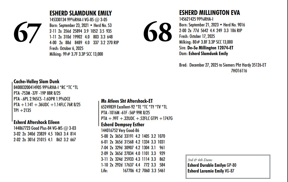 Milking: 80# 3.8F 3.3P SCC 13,000