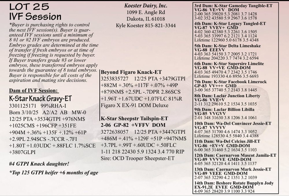 *Top 125 GTPI heifer +6 months of age