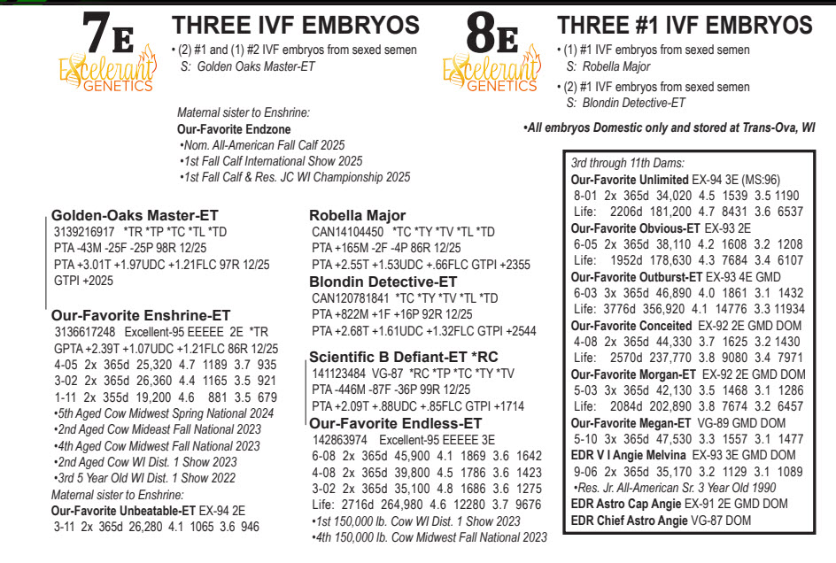 S: Golden Oaks Master-ETAll embryos Domestic only and stored at Trans-Ova, WI