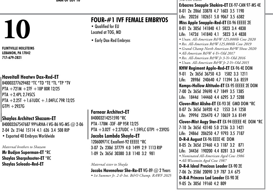 -Selling price is per Embryo or Straw