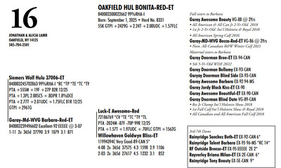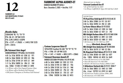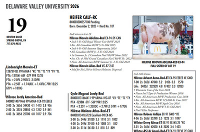 DVC GREEN & GOLD SPRING SPECTACULAR 108 Farm View Road, Doylestown PA, 18901 21st Anniversary Edition Contact Agent: Aaron Ray Tompkins 336-363-4639 Catalog | Terms of Auction Download CATALOG Download SALE ORDER Download UPDATES Download UPDATED LOTS Download UPDATED LOTS Catalog | Terms Download CATALOG Download SALE ORDER Download UPDATES Download UPDATED LOTS Download UPDATED LOTS All Items (95) Cattle (84) Embryos (11) Categories All Items (95) Cattle (84) Embryos (11) Search Item #: Keyword: Search Catalog Item #: Keyword: 20 items per page 50 items per page 100 items per page Go to page #: 1 , 2 , 3 , 4 , 5 #1 – MS ROMPEN MISCHIEF-RED-ET 840003281746339 99%RHA-I VG-85 86-MS @ 2-03 Born: December 5, 2023 32K GTPI +2300G A1/A2 Fresh: November 19, 2025 Due: November 16, 2026 to Farnear Audacious-Red 551HO6078 Location: 108 Farm View Road, Doylestown PA, 18901 Contact Agent: Aaron Ray Tompkins 336-363-4639 More Info / Bid Now Track this Item Sold High Bid: $8,400.00 – #147 #1 – MS ROMPEN MISCHIEF-RED-ET Sold High Bid: $8,400 More Details More Info / Bid Track Item 840003281746339 99%RHA-I VG-85 86-MS @ 2-03 Born: December 5, 2023 32K GTPI +2300G A1/A2 Fresh: November 19, 2025 Due: November 16, 2026 to Farnear Audacious-Red 551HO6078 Location: 108 Farm View Road, Doylestown PA, 18901 Contact Agent: Aaron Ray Tompkins 336-363-4639 #1D – DAX X APPLE THREE-#1 IVF FEMALE EMBRYOS PROCEEDS GO TO DVU DAIRY SOCIETY Location: 108 Farm View Road, Doylestown PA, 18901 Contact Agent: Aaron Ray Tompkins 336-363-4639 More Info / Bid Now Track this Item Sold High Bid: $350.00 – #1104 Auction Type: Quantity x Price Quantity: 3 #1D – DAX X APPLE Quantity x PriceQuantity: 3 Sold High Bid: $350 More Details More Info / Bid Track Item THREE-#1 IVF FEMALE EMBRYOS PROCEEDS GO TO DVU DAIRY SOCIETY Location: 108 Farm View Road, Doylestown PA, 18901 Contact Agent: Aaron Ray Tompkins 336-363-4639 #2 – MIDDLEBUSH PALDWYN MAPLE-RED 840003311730844 99%RHA-I *TC *TV *TL Born: November 19, 2025 Herd No. 521 A1/A2 Location: 108 Farm View Road, Doylestown PA, 18901 Contact Agent: Aaron Ray Tompkins 336-363-4639 More Info / Bid Now Track this Item Sold High Bid: $2,300.00 – #124 #2 – MIDDLEBUSH PALDWYN MAPLE-RED Sold High Bid: $2,300 More Details More Info / Bid Track Item 840003311730844 99%RHA-I *TC *TV *TL Born: November 19, 2025 Herd No. 521 A1/A2 Location: 108 Farm View Road, Doylestown PA, 18901 Contact Agent: Aaron Ray Tompkins 336-363-4639 #3 – PLEASANT NOOK ALL LILAC-ET 840003298864621 Born: December 5, 2025 Location: 108 Farm View Road, Doylestown PA, 18901 Contact Agent: Aaron Ray Tompkins 336-363-4639 More Info / Bid Now Track this Item Sold High Bid: $2,700.00 – #1067 #3 – PLEASANT NOOK ALL LILAC-ET Sold High Bid: $2,700 More Details More Info / Bid Track Item 840003298864621 Born: December 5, 2025 Location: 108 Farm View Road, Doylestown PA, 18901 Contact Agent: Aaron Ray Tompkins 336-363-4639 #4 – PEACE&PLENTY CARTEL JUBCART 145858579 99%RHA-I Born: September 16, 2025 Herd No. 2424 Location: 108 Farm View Road, Doylestown PA, 18901 Contact Agent: Aaron Ray Tompkins 336-363-4639 More Info / Bid Now Track this Item Sold High Bid: $3,100.00 – #16 #4 – PEACE&PLENTY CARTEL JUBCART Sold High Bid: $3,100 More Details More Info / Bid Track Item 145858579 99%RHA-I Born: September 16, 2025 Herd No. 2424 Location: 108 Farm View Road, Doylestown PA, 18901 Contact Agent: Aaron Ray Tompkins 336-363-4639 #5 – PEACESTONE LAM ABSOLUTE-ET 840003296764331 99%RHA-I Born: September 6, 2025 Herd No. 65 Location: 108 Farm View Road, Doylestown PA, 18901 Contact Agent: Aaron Ray Tompkins 336-363-4639 More Info / Bid Now Track this Item Sold High Bid: $3,400.00 – #149 #5 – PEACESTONE LAM ABSOLUTE-ET Sold High Bid: $3,400 More Details More Info / Bid Track Item 840003296764331 99%RHA-I Born: September 6, 2025 Herd No. 65 Location: 108 Farm View Road, Doylestown PA, 18901 Contact Agent: Aaron Ray Tompkins 336-363-4639 #6 – MS LAMBDA SILK-ET Registration Pending Born: March 18, 2024 Fresh: February 9, 2026 Location: 108 Farm View Road, Doylestown PA, 18901 Contact Agent: Aaron Ray Tompkins 336-363-4639 More Info / Bid Now Track this Item Sold High Bid: $11,700.00 – #147 #6 – MS LAMBDA SILK-ET Sold High Bid: $11,700 More Details More Info / Bid Track Item Registration Pending Born: March 18, 2024 Fresh: February 9, 2026 Location: 108 Farm View Road, Doylestown PA, 18901 Contact Agent: Aaron Ray Tompkins 336-363-4639 #7 – GVA DROPBOX CHATA-ET 840003295288401 Pending Born: June 8, 2025 Herd No. 3620 Location: 108 Farm View Road, Doylestown PA, 18901 Contact Agent: Aaron Ray Tompkins 336-363-4639 More Info / Bid Now Track this Item Sold High Bid: $5,000.00 – #1060 #7 – GVA DROPBOX CHATA-ET Sold High Bid: $5,000 More Details More Info / Bid Track Item 840003295288401 Pending Born: June 8, 2025 Herd No. 3620 Location: 108 Farm View Road, Doylestown PA, 18901 Contact Agent: Aaron Ray Tompkins 336-363-4639 #8 – OAKFIELD SUPERMAN TURTLE-ET 840003286536402 99%RHA-I Born: September 3, 2025 Herd 7781 55K GTPI +2457G +2.75T +1.63UDC +1.64FLC Location: 108 Farm View Road, Doylestown PA, 18901 Contact Agent: Aaron Ray Tompkins 336-363-4639 More Info / Bid Now Track this Item Sold High Bid: $2,600.00 – #1060 #8 – OAKFIELD SUPERMAN TURTLE-ET Sold High Bid: $2,600 More Details More Info / Bid Track Item 840003286536402 99%RHA-I Born: September 3, 2025 Herd 7781 55K GTPI +2457G +2.75T +1.63UDC +1.64FLC Location: 108 Farm View Road, Doylestown PA, 18901 Contact Agent: Aaron Ray Tompkins 336-363-4639 #9 – HEIFER CALF Registration Pending Born: March 11, 2026 Location: 108 Farm View Road, Doylestown PA, 18901 Contact Agent: Aaron Ray Tompkins 336-363-4639 More Info / Bid Now Track this Item Sold High Bid: $2,200.00 – #1057 #9 – HEIFER CALF Sold High Bid: $2,200 More Details More Info / Bid Track Item Registration Pending Born: March 11, 2026 Location: 108 Farm View Road, Doylestown PA, 18901 Co