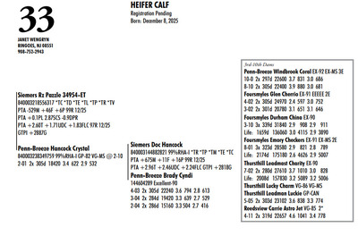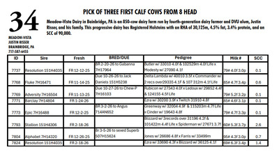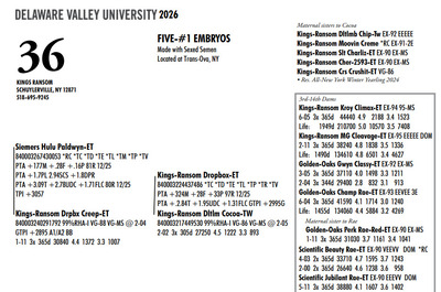 DVC GREEN & GOLD SPRING SPECTACULAR 108 Farm View Road, Doylestown PA, 18901 21st Anniversary Edition Contact Agent: Aaron Ray Tompkins 336-363-4639 Catalog | Terms of Auction Download CATALOG Download SALE ORDER Download UPDATES Download UPDATED LOTS Download UPDATED LOTS Catalog | Terms Download CATALOG Download SALE ORDER Download UPDATES Download UPDATED LOTS Download UPDATED LOTS All Items (95) Cattle (84) Embryos (11) Categories All Items (95) Cattle (84) Embryos (11) Search Item #: Keyword: Search Catalog Item #: Keyword: 20 items per page 50 items per page 100 items per page Go to page #: 1 , 2 , 3 , 4 , 5 #20 – DANIELLE-L A ASTROID-RED- ET 840003300557187 99%RHA-I Born: September 11, 2025 Herd No. 780 Location: 108 Farm View Road, Doylestown PA, 18901 Contact Agent: Aaron Ray Tompkins 336-363-4639 More Info / Bid Now Track this Item High Bid: $1,000.00 – #1060 Login to Bid #20 – DANIELLE-L A ASTROID-RED- ET High Bid: $1,000 Login to Bid More Details More Info / Bid Track Item 840003300557187 99%RHA-I Born: September 11, 2025 Herd No. 780 Location: 108 Farm View Road, Doylestown PA, 18901 Contact Agent: Aaron Ray Tompkins 336-363-4639 #21 – HOLLOW-RIDGE SUPRM AMBER-ET 840003314304903 99%RHA-I *RC Born: December 3, 2025 Herd No. 280 Location: 108 Farm View Road, Doylestown PA, 18901 Contact Agent: Aaron Ray Tompkins 336-363-4639 More Info / Bid Now Track this Item Sold High Bid: $2,400.00 – #1028 #21 – HOLLOW-RIDGE SUPRM AMBER-ET Sold High Bid: $2,400 More Details More Info / Bid Track Item 840003314304903 99%RHA-I *RC Born: December 3, 2025 Herd No. 280 Location: 108 Farm View Road, Doylestown PA, 18901 Contact Agent: Aaron Ray Tompkins 336-363-4639 #22 – ACETYLENE X AERO RED EMBRYOS SIX-#1 IVF EMBRYOS Made with Sexed Semen Located at Trans-Ova, NY Location: 108 Farm View Road, Doylestown PA, 18901 Contact Agent: Aaron Ray Tompkins 336-363-4639 More Info / Bid Now Track this Item Sold High Bid: $350.00 – #1060 Auction Type: Quantity x Price Quantity: 6 #22 – ACETYLENE X AERO RED EMBRYOS Quantity x PriceQuantity: 6 Sold High Bid: $350 More Details More Info / Bid Track Item SIX-#1 IVF EMBRYOS Made with Sexed Semen Located at Trans-Ova, NY Location: 108 Farm View Road, Doylestown PA, 18901 Contact Agent: Aaron Ray Tompkins 336-363-4639 #23 – SOLID-GOLD AL LEGO-RED-ET 840003200252230 99%RHA-I Born: March 20, 2024 Herd No. 2230 Due: May 9, 2026 to Bomaz Pringle-Red-ET (Sexed Semen) 777HO12833 Location: 108 Farm View Road, Doylestown PA, 18901 Contact Agent: Aaron Ray Tompkins 336-363-4639 More Info / Bid Now Track this Item Sold High Bid: $4,650.00 – #156 #23 – SOLID-GOLD AL LEGO-RED-ET Sold High Bid: $4,650 More Details More Info / Bid Track Item 840003200252230 99%RHA-I Born: March 20, 2024 Herd No. 2230 Due: May 9, 2026 to Bomaz Pringle-Red-ET (Sexed Semen) 777HO12833 Location: 108 Farm View Road, Doylestown PA, 18901 Contact Agent: Aaron Ray Tompkins 336-363-4639 #24 – AUDACUIOUS X SHARMA EMBRYOS FOUR-#1 IVF EMBYROS Made with Sexed Semen Qualified for export to CAN, UK & EU Location: 108 Farm View Road, Doylestown PA, 18901 Contact Agent: Aaron Ray Tompkins 336-363-4639 More Info / Bid Now Track this Item Sold High Bid: $325.00 – #2000 Auction Type: Quantity x Price Quantity: 4 #24 – AUDACUIOUS X SHARMA EMBRYOS Quantity x PriceQuantity: 4 Sold High Bid: $325 More Details More Info / Bid Track Item FOUR-#1 IVF EMBYROS Made with Sexed Semen Qualified for export to CAN, UK & EU Location: 108 Farm View Road, Doylestown PA, 18901 Contact Agent: Aaron Ray Tompkins 336-363-4639 #25 – HEIFER CALF Registraion Pending Born: September 26, 2025 Sire: Parfect Location: 108 Farm View Road, Doylestown PA, 18901 Contact Agent: Aaron Ray Tompkins 336-363-4639 More Info / Bid Now Track this Item Sold High Bid: $2,100.00 – #128 #25 – HEIFER CALF Sold High Bid: $2,100 More Details More Info / Bid Track Item Registraion Pending Born: September 26, 2025 Sire: Parfect Location: 108 Farm View Road, Doylestown PA, 18901 Contact Agent: Aaron Ray Tompkins 336-363-4639 #26 – HEIFER CALF HEIFER CALF Registraion Pending Born: September 8, 2025 Sire: Master Location: 108 Farm View Road, Doylestown PA, 18901 Contact Agent: Aaron Ray Tompkins 336-363-4639 More Info / Bid Now Track this Item Sold High Bid: $2,000.00 – #127 #26 – HEIFER CALF Sold High Bid: $2,000 More Details More Info / Bid Track Item HEIFER CALF Registraion Pending Born: September 8, 2025 Sire: Master Location: 108 Farm View Road, Doylestown PA, 18901 Contact Agent: Aaron Ray Tompkins 336-363-4639 #27 – DELTA LAMBDA X FANTASA EMBRYOS FIVE-#1 IVF EMBRYOS Made with Sexed Semen Located at: Trans Ova, MD Location: 108 Farm View Road, Doylestown PA, 18901 Contact Agent: Aaron Ray Tompkins 336-363-4639 More Info / Bid Now Track this Item Sold High Bid: $400.00 – #105 Auction Type: Quantity x Price Quantity: 5 #27 – DELTA LAMBDA X FANTASA EMBRYOS Quantity x PriceQuantity: 5 Sold High Bid: $400 More Details More Info / Bid Track Item FIVE-#1 IVF EMBRYOS Made with Sexed Semen Located at: Trans Ova, MD Location: 108 Farm View Road, Doylestown PA, 18901 Contact Agent: Aaron Ray Tompkins 336-363-4639 #28 – CURLYDELL HULU SAPPHIRE-RED 145816588 99%RHA-I Born: June 2, 2025 Herd No. 26 Location: 108 Farm View Road, Doylestown PA, 18901 Contact Agent: Aaron Ray Tompkins 336-363-4639 More Info / Bid Now Track this Item Sold High Bid: $2,600.00 – #1060 #28 – CURLYDELL HULU SAPPHIRE-RED Sold High Bid: $2,600 More Details More Info / Bid Track Item 145816588 99%RHA-I Born: June 2, 2025 Herd No. 26 Location: 108 Farm View Road, Doylestown PA, 18901 Contact Agent: Aaron Ray Tompkins 336-363-4639 #29 – CARPSDALE-J TNG REBA-RED-ET 840003266248545 Born: September 2, 2025 Herd No. 1350 Location: 108 Farm View Road, Doylestown PA, 18901 Contact Agent: Aaron Ray Tompkins 336-363-4639 More Info / Bid Now Track this Item Sold High Bid: $3,400.00 – #121 #29 – CARPSDALE-J TNG REBA-RED-ET Sold High Bid: $3,400 More Det