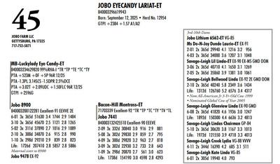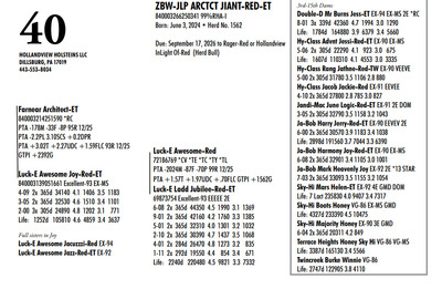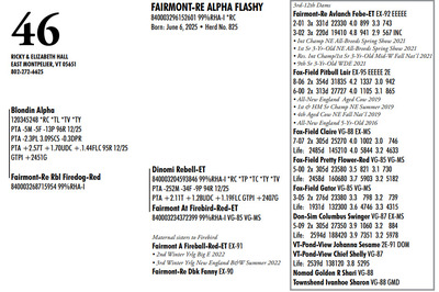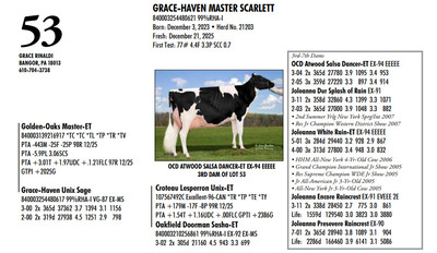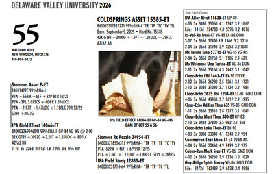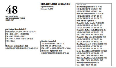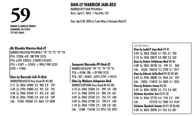 DVC GREEN & GOLD SPRING SPECTACULAR 108 Farm View Road, Doylestown PA, 18901 21st Anniversary Edition Contact Agent: Aaron Ray Tompkins 336-363-4639 Catalog | Terms of Auction Download CATALOG Download SALE ORDER Download UPDATES Download UPDATED LOTS Download UPDATED LOTS Catalog | Terms Download CATALOG Download SALE ORDER Download UPDATES Download UPDATED LOTS Download UPDATED LOTS All Items (95) Cattle (84) Embryos (11) Categories All Items (95) Cattle (84) Embryos (11) Search Item #: Keyword: Search Catalog Item #: Keyword: 20 items per page 50 items per page 100 items per page Go to page #: 1 , 2 , 3 , 4 , 5 #40 – ZBW-JLP ARCTCT JIANT-RED-ET 840003266250341 99%RHA-I Born: June 3, 2024 Herd No. 1562 Due: September 17, 2026 to Rager-Red or Hollandview InLight Of-Red (Herd Bull) Location: 108 Farm View Road, Doylestown PA, 18901 Contact Agent: Aaron Ray Tompkins 336-363-4639 More Info / Bid Now Track this Item Sold High Bid: $3,500.00 – #119 #40 – ZBW-JLP ARCTCT JIANT-RED-ET Sold High Bid: $3,500 More Details More Info / Bid Track Item 840003266250341 99%RHA-I Born: June 3, 2024 Herd No. 1562 Due: September 17, 2026 to Rager-Red or Hollandview InLight Of-Red (Herd Bull) Location: 108 Farm View Road, Doylestown PA, 18901 Contact Agent: Aaron Ray Tompkins 336-363-4639 #41 – DARKHORSE ALPHA ESCALTOR-ET 840003284049748 99%RHA-I *RC *TC *TL Born: September 2, 2024 Herd No. 744 43K GTPI +2160G A1/A1 AE Due: September 20, 2026 to Angus Location: 108 Farm View Road, Doylestown PA, 18901 Contact Agent: Aaron Ray Tompkins 336-363-4639 More Info / Bid Now Track this Item Sold High Bid: $3,400.00 – #126 #41 – DARKHORSE ALPHA ESCALTOR-ET Sold High Bid: $3,400 More Details More Info / Bid Track Item 840003284049748 99%RHA-I *RC *TC *TL Born: September 2, 2024 Herd No. 744 43K GTPI +2160G A1/A1 AE Due: September 20, 2026 to Angus Location: 108 Farm View Road, Doylestown PA, 18901 Contact Agent: Aaron Ray Tompkins 336-363-4639 #42 – OAKFIELD HULU SIRI-RED 840003300022576 99%RHA-I Born: June 1, 2025 Herd No. 8245 55K GTPI +2303G +2.23T +1.04UDC +1.02FLC A1/A2 BE Location: 108 Farm View Road, Doylestown PA, 18901 Contact Agent: Aaron Ray Tompkins 336-363-4639 More Info / Bid Now Track this Item Sold High Bid: $2,800.00 – #156 #42 – OAKFIELD HULU SIRI-RED Sold High Bid: $2,800 More Details More Info / Bid Track Item 840003300022576 99%RHA-I Born: June 1, 2025 Herd No. 8245 55K GTPI +2303G +2.23T +1.04UDC +1.02FLC A1/A2 BE Location: 108 Farm View Road, Doylestown PA, 18901 Contact Agent: Aaron Ray Tompkins 336-363-4639 #43 – OAKFIELD HEAT SNOOPY-RED-ET 840003300022596 99%RHA-I *TE *TC *TY *TV *TL Born: June 20, 2025 Herd No. 8265 55K GTPI +2294G +2.22T +.83UDC +.64FLC A1/A2 AB Location: 108 Farm View Road, Doylestown PA, 18901 Contact Agent: Aaron Ray Tompkins 336-363-4639 More Info / Bid Now Track this Item Sold High Bid: $2,800.00 – #1060 #43 – OAKFIELD HEAT SNOOPY-RED-ET Sold High Bid: $2,800 More Details More Info / Bid Track Item 840003300022596 99%RHA-I *TE *TC *TY *TV *TL Born: June 20, 2025 Herd No. 8265 55K GTPI +2294G +2.22T +.83UDC +.64FLC A1/A2 AB Location: 108 Farm View Road, Doylestown PA, 18901 Contact Agent: Aaron Ray Tompkins 336-363-4639 #44 – OAKFIELD HULU SAMAYAH-ET 840003300022679 99%RHA-I *RC Born: September 3, 2025 Herd No. 8348 55K GTPI +2363G +1.90T +.99UDC +1.17FLC Location: 108 Farm View Road, Doylestown PA, 18901 Contact Agent: Aaron Ray Tompkins 336-363-4639 More Info / Bid Now Track this Item Sold High Bid: $2,800.00 – #1047 #44 – OAKFIELD HULU SAMAYAH-ET Sold High Bid: $2,800 More Details More Info / Bid Track Item 840003300022679 99%RHA-I *RC Born: September 3, 2025 Herd No. 8348 55K GTPI +2363G +1.90T +.99UDC +1.17FLC Location: 108 Farm View Road, Doylestown PA, 18901 Contact Agent: Aaron Ray Tompkins 336-363-4639 #45 – JOBO EYECANDY LARIAT-ET 840003296619943 Born: September 12, 2025 Herd No. 12954 GTPI +2384 +1.57 A1/A2 Location: 108 Farm View Road, Doylestown PA, 18901 Contact Agent: Aaron Ray Tompkins 336-363-4639 More Info / Bid Now Track this Item Sold High Bid: $2,600.00 – #1059 #45 – JOBO EYECANDY LARIAT-ET Sold High Bid: $2,600 More Details More Info / Bid Track Item 840003296619943 Born: September 12, 2025 Herd No. 12954 GTPI +2384 +1.57 A1/A2 Location: 108 Farm View Road, Doylestown PA, 18901 Contact Agent: Aaron Ray Tompkins 336-363-4639 #46 – FAIRMONT-RE ALPHA FLASHY 840003296152601 99%RHA-I *RC Born: June 6, 2025 Herd No. 825 Location: 108 Farm View Road, Doylestown PA, 18901 Contact Agent: Aaron Ray Tompkins 336-363-4639 More Info / Bid Now Track this Item Sold High Bid: $2,600.00 – #108 #46 – FAIRMONT-RE ALPHA FLASHY Sold High Bid: $2,600 More Details More Info / Bid Track Item 840003296152601 99%RHA-I *RC Born: June 6, 2025 Herd No. 825 Location: 108 Farm View Road, Doylestown PA, 18901 Contact Agent: Aaron Ray Tompkins 336-363-4639 #47 – FAIRMONT HULU FUEGO-RED 840003296152460 99%RHA-I Born: March 14, 2025 Herd No. 684 Location: 108 Farm View Road, Doylestown PA, 18901 Contact Agent: Aaron Ray Tompkins 336-363-4639 More Info / Bid Now Track this Item Sold High Bid: $2,500.00 – #118 #47 – FAIRMONT HULU FUEGO-RED Sold High Bid: $2,500 More Details More Info / Bid Track Item 840003296152460 99%RHA-I Born: March 14, 2025 Herd No. 684 Location: 108 Farm View Road, Doylestown PA, 18901 Contact Agent: Aaron Ray Tompkins 336-363-4639 #48 – NED-ACRES HAZE SUNDAY-RED Registration Pending Born: June 10, 2025 Location: 108 Farm View Road, Doylestown PA, 18901 Contact Agent: Aaron Ray Tompkins 336-363-4639 More Info / Bid Now Track this Item Sold High Bid: $2,800.00 – #1047 #48 – NED-ACRES HAZE SUNDAY-RED Sold High Bid: $2,800 More Details More Info / Bid Track Item Registration Pending Born: June 10, 2025 Location: 108 Farm View Road, Doylestown PA, 18901 Contact Agent: Aaron Ray Tompkins 336-363-4639 #49 – LINK A RIVERDANCE 840003310665581 99%RHA-I *RC Born: December 2, 2025 Herd No. 1212 Location: 108 Farm Vie
