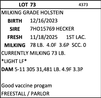 BRUBACKER'S FEBUARY Monthly Production Sale
