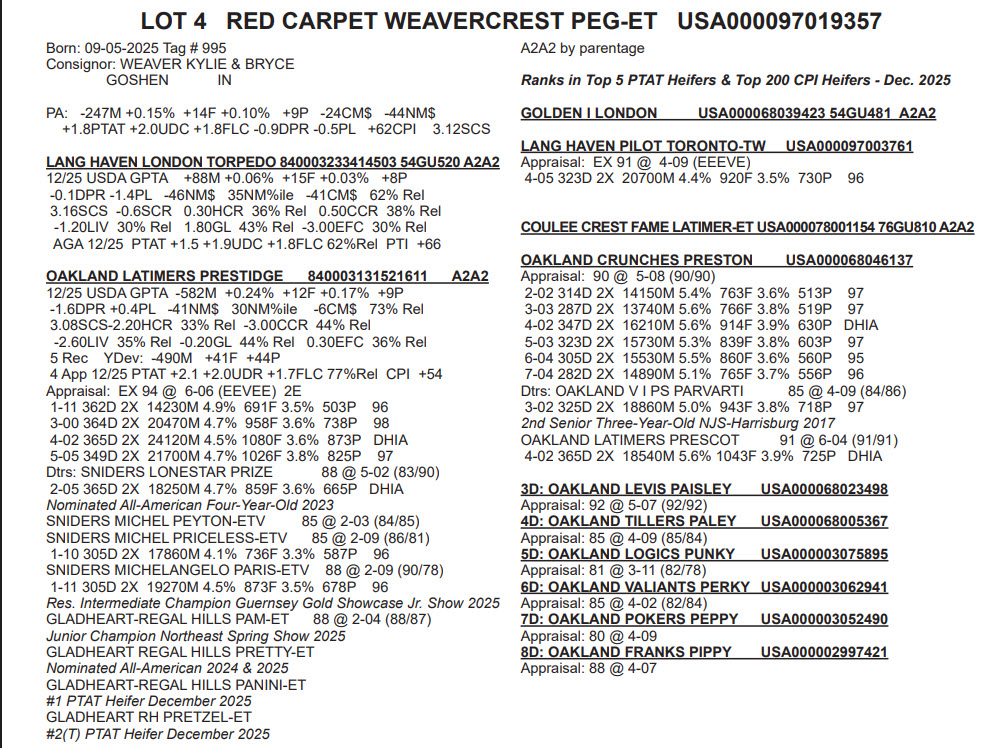 Ranks in Top 5 PTAT Heifers & Top 200 CPI Heifers - Dec. 2025