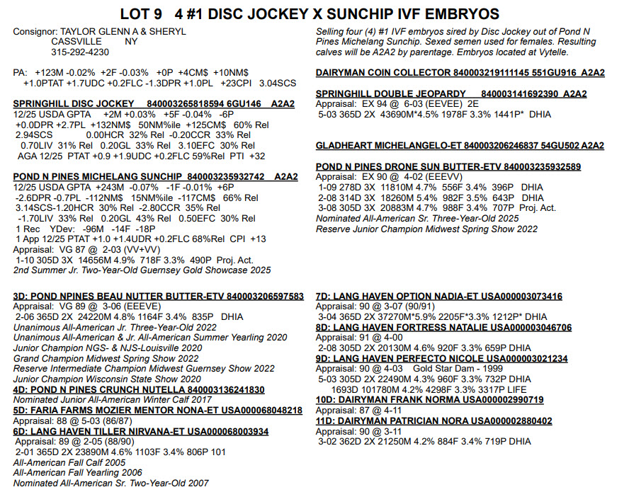 elling four (4) #1 IVF embryos sired by Disc Jockey out of Pond N