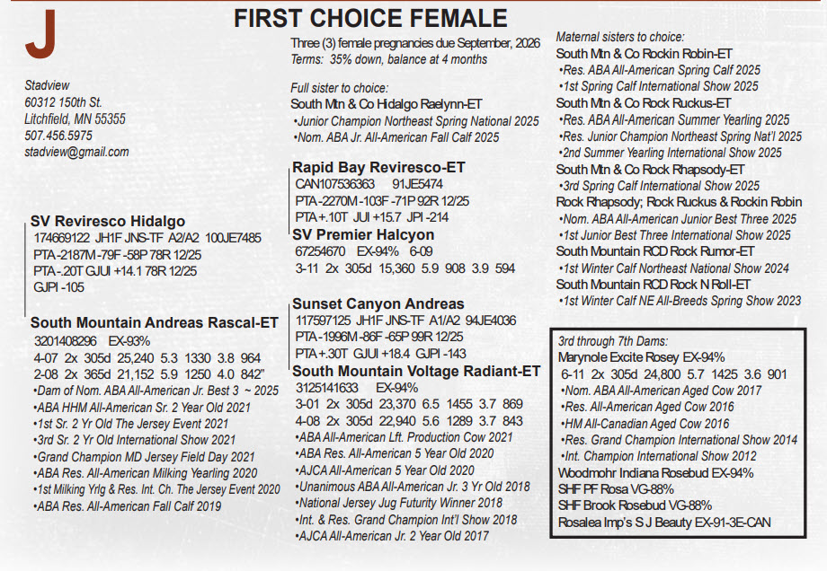 Three (3) female pregnancies due September, 2026