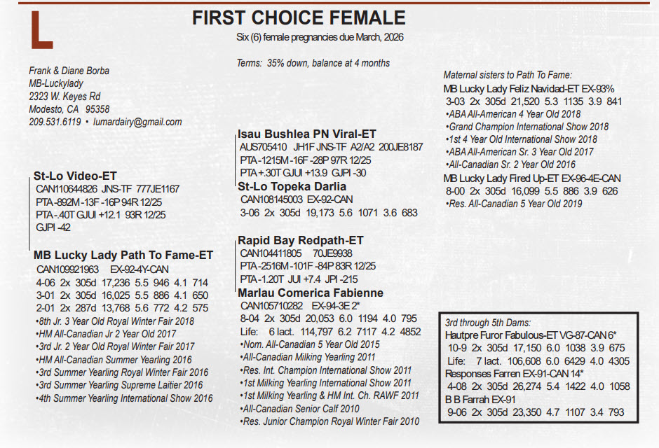 Six (6) female pregnancies due March, 2026