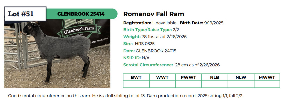 Glenbrook Farm SHEEP AUCTION
