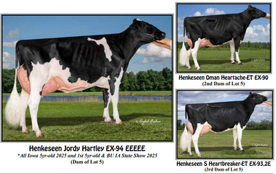 Iowa Spring Holstein Sale 101 Huber Dr, Calmar IA, 52132 Elite Holstein offering Contact Agent: KATIE 717-543-7883 Catalog | Terms of Auction Download CATALOG ISSUU CATALOG LINK Catalog | Terms Download CATALOG ISSUU CATALOG LINK All Items (28) Cattle (18) Embryos (10) Categories All Items (28) Cattle (18) Embryos (10) Search Item #: Keyword: Search Catalog Item #: Keyword: 20 items per page 50 items per page 100 items per page Go to page #: 1 , 2 #1 – Genosource Henslee-ET 3322115652 99%RHA-I Born 9/2/25 2/26 PTA +2701GTPI +2.91T +1.81UDC +1.40FLC A2/A2 AB Location: 101 Huber Dr, Calmar IA, 52132 Contact Agent: KATIE 717-543-7883 More Info / Bid Now Track this Item Sold High Bid: $5,950.00 – #500 #1 – Genosource Henslee-ET Sold High Bid: $5,950 More Details More Info / Bid Track Item 3322115652 99%RHA-I Born 9/2/25 2/26 PTA +2701GTPI +2.91T +1.81UDC +1.40FLC A2/A2 AB Location: 101 Huber Dr, Calmar IA, 52132 Contact Agent: KATIE 717-543-7883 #2 – KCCK All Behaved-ET 3283662687 99%RHA-I Born 9/2/25 Location: 101 Huber Dr, Calmar IA, 52132 Contact Agent: KATIE 717-543-7883 More Info / Bid Now Track this Item Sold High Bid: $3,000.00 – #500 #2 – KCCK All Behaved-ET Sold High Bid: $3,000 More Details More Info / Bid Track Item 3283662687 99%RHA-I Born 9/2/25 Location: 101 Huber Dr, Calmar IA, 52132 Contact Agent: KATIE 717-543-7883 #3 – JERRY LEWIS X TARA CHOICE *Selling buyers choice of the 2 females listed below: *Choice to be made by April 1, 2026 Le-O-La JLewis Taylor-ET 3269155645 99%RHA-I Born 12/21/25 Le-O-La JLewis Toni-ET 3269155646 99%RHA-I Born 12/21/25 Location: 101 Huber Dr, Calmar IA, 52132 Contact Agent: KATIE 717-543-7883 More Info / Bid Now Track this Item Sold High Bid: $4,200.00 – #500 #3 – JERRY LEWIS X TARA CHOICE Sold High Bid: $4,200 More Details More Info / Bid Track Item *Selling buyers choice of the 2 females listed below: *Choice to be made by April 1, 2026 Le-O-La JLewis Taylor-ET 3269155645 99%RHA-I Born 12/21/25 Le-O-La JLewis Toni-ET 3269155646 99%RHA-I Born 12/21/25 Location: 101 Huber Dr, Calmar IA, 52132 Contact Agent: KATIE 717-543-7883 #4 – HULU X BARACUDA CHOICE Selling buyers choice of 4 females born December, 2025 *Choice to be made by April 1, 2026 Location: 101 Huber Dr, Calmar IA, 52132 Contact Agent: KATIE 717-543-7883 More Info / Bid Now Track this Item Sold High Bid: $3,500.00 – #1062 #4 – HULU X BARACUDA CHOICE Sold High Bid: $3,500 More Details More Info / Bid Track Item Selling buyers choice of 4 females born December, 2025 *Choice to be made by April 1, 2026 Location: 101 Huber Dr, Calmar IA, 52132 Contact Agent: KATIE 717-543-7883 #5 – AUDACIOUS X HARTLEY CHOICE Selling 1st choice of 8 female pregs due June, 2026 Location: 101 Huber Dr, Calmar IA, 52132 Contact Agent: KATIE 717-543-7883 More Info / Bid Now Track this Item Sold High Bid: $5,400.00 – #500 #5 – AUDACIOUS X HARTLEY CHOICE Sold High Bid: $5,400 More Details More Info / Bid Track Item Selling 1st choice of 8 female pregs due June, 2026 Location: 101 Huber Dr, Calmar IA, 52132 Contact Agent: KATIE 717-543-7883 #6 – SUPERMAN X TAJMAHAL EMBRYOS Selling 4-#1 IVF female embryos sired by Superman*RC *Embryos at TransOva, Madison, WI Location: 101 Huber Dr, Calmar IA, 52132 Contact Agent: KATIE 717-543-7883 More Info / Bid Now Track this Item Sold High Bid: $350.00 – #500 Auction Type: Quantity x Price Quantity: 4 #6 – SUPERMAN X TAJMAHAL EMBRYOS Quantity x PriceQuantity: 4 Sold High Bid: $350 More Details More Info / Bid Track Item Selling 4-#1 IVF female embryos sired by Superman*RC *Embryos at TransOva, Madison, WI Location: 101 Huber Dr, Calmar IA, 52132 Contact Agent: KATIE 717-543-7883 #7 – SDG-PH 8002 Howland 9185-ET 3296334424 99%RHA-I Born 3/21/25 A1/A2 AB MW-0 12/25 PTA +3445GTPI +1027NM$ +1060CM$ +156CFP +304FE +1274M +.16% +96F +.07% +60P +5.2PL 2.93SCS +1.7CCR +1.2FI +.99T +.69UDC -.04FLC 1.4%SCE Location: 101 Huber Dr, Calmar IA, 52132 Contact Agent: KATIE 717-543-7883 More Info / Bid Now Track this Item Sold High Bid: $9,500.00 – #1045 #7 – SDG-PH 8002 Howland 9185-ET Sold High Bid: $9,500 More Details More Info / Bid Track Item 3296334424 99%RHA-I Born 3/21/25 A1/A2 AB MW-0 12/25 PTA +3445GTPI +1027NM$ +1060CM$ +156CFP +304FE +1274M +.16% +96F +.07% +60P +5.2PL 2.93SCS +1.7CCR +1.2FI +.99T +.69UDC -.04FLC 1.4%SCE Location: 101 Huber Dr, Calmar IA, 52132 Contact Agent: KATIE 717-543-7883 #8 – SDG-PH 8486 Eeyore 8958-ET 3309749539 99%RHA-I Born 8/26/25 A1/A2 AA MW-0 12/25 PTA +3456GTPI +1042NM$ +1074CM$ +145CFP +282FE +1002M +.20% +96F +.06% +49P +6.3PL 2.71SCS +3.0CCR +2.2FI +.58T +.54UDC +.21FLC 1.7%SCE +1327DWP$ +208WT$ +98CW$ *Breed leading wellness traits! Location: 101 Huber Dr, Calmar IA, 52132 Contact Agent: KATIE 717-543-7883 More Info / Bid Now Track this Item Sold High Bid: $10,000.00 – #1037 #8 – SDG-PH 8486 Eeyore 8958-ET Sold High Bid: $10,000 More Details More Info / Bid Track Item 3309749539 99%RHA-I Born 8/26/25 A1/A2 AA MW-0 12/25 PTA +3456GTPI +1042NM$ +1074CM$ +145CFP +282FE +1002M +.20% +96F +.06% +49P +6.3PL 2.71SCS +3.0CCR +2.2FI +.58T +.54UDC +.21FLC 1.7%SCE +1327DWP$ +208WT$ +98CW$ *Breed leading wellness traits! Location: 101 Huber Dr, Calmar IA, 52132 Contact Agent: KATIE 717-543-7883 #9 – KANCK X HESTIA EMBRYOS Selling 5-#1 IVF female embryos sired by Knack *Qualified for UK & Canada Embryos Parent Avg. = +3461GTPI +906NM$ +808M +.29%+112F +52P +3.7PL +1.30T +1.21UDC *Free-agent embryos! *Embryos at TransOva, Madison, WI Location: 101 Huber Dr, Calmar IA, 52132 Contact Agent: KATIE 717-543-7883 More Info / Bid Now Track this Item Sold High Bid: $725.00 – #500 Auction Type: Quantity x Price Quantity: 5 #9 – KANCK X HESTIA EMBRYOS Quantity x PriceQuantity: 5 Sold High Bid: $725 More Details More Info / Bid Track Item Selling 5-#1 IVF female embryos sired by Knack *Qualified for UK & Canada Embryos Parent Avg. = +3461GTPI +906NM$ +808M +.29%+112F +52P +3.7PL +1.30T +1.21UDC *Free-agent embryos! *E