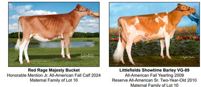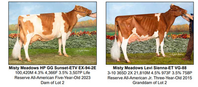 2026 NYS Guernsey Video Sale 6301 NY-298, East Syracuse NY, 13057 AWESOME GUERNSEY OFFERING Contact Agent: Zach Johnson 802-222-1422 Catalog | Terms of Auction Download CATALOG Download CORRECTED LOT 2 Download SALE ORDER Catalog | Terms Download CATALOG Download CORRECTED LOT 2 Download SALE ORDER All Items (15) Cattle (11) Embryos (4) Categories All Items (15) Cattle (11) Embryos (4) Search Item #: Keyword: Search Catalog Item #: Keyword: 20 items per page 50 items per page 100 items per page Go to page #: 1 #1 – LEGACY X SECOYA IVF EMBRYOS Selling four (4) #1 IVF embryos sired by Legacy out of Coulee Crest Newton Secoya-ETV. Sexed semen was used for females. Resulting calves will be A2A2 by parentage and would rank in the top 150 CPI Heifers - December 2025. Embryos located at Vytelle. Location: 6301 NY-298, East Syracuse NY, 13057 Contact Agent: Zach Johnson 802-222-1422 More Info / Bid Now Track this Item Sold High Bid: $575.00 – #1021 Auction Type: Quantity x Price Quantity: 4 #1 – LEGACY X SECOYA IVF EMBRYOS Quantity x PriceQuantity: 4 Sold High Bid: $575 More Details More Info / Bid Track Item Selling four (4) #1 IVF embryos sired by Legacy out of Coulee Crest Newton Secoya-ETV. Sexed semen was used for females. Resulting calves will be A2A2 by parentage and would rank in the top 150 CPI Heifers - December 2025. Embryos located at Vytelle. Location: 6301 NY-298, East Syracuse NY, 13057 Contact Agent: Zach Johnson 802-222-1422 #2 – PRESCOTT X SUNSET IVF EMBRYOS Selling three (3) #1 IVF embryos sired by PRESCOTT out of Misty Meadows HP GG Sunset-ETV. Sexed semen was used for females. Resulting calves will be A2A2 by parentage. Embryos located at TransOva, MD. Location: 6301 NY-298, East Syracuse NY, 13057 Contact Agent: Zach Johnson 802-222-1422 More Info / Bid Now Track this Item Sold High Bid: $575.00 – #1028 Auction Type: Quantity x Price Quantity: 3 #2 – PRESCOTT X SUNSET IVF EMBRYOS Quantity x PriceQuantity: 3 Sold High Bid: $575 More Details More Info / Bid Track Item Selling three (3) #1 IVF embryos sired by PRESCOTT out of Misty Meadows HP GG Sunset-ETV. Sexed semen was used for females. Resulting calves will be A2A2 by parentage. Embryos located at TransOva, MD. Location: 6301 NY-298, East Syracuse NY, 13057 Contact Agent: Zach Johnson 802-222-1422 #3 – TORPEDO X LEIA IVF EMBRYOS Selling three (3) #1 IVF embryos sired by Torpedo out of Golden I Jonathan Leia. Sexed semen used for females. Resulting calves will be A2A2 by parentage. Embryos located at White Oak Veterinary Clinic, Berlin, PA. Location: 6301 NY-298, East Syracuse NY, 13057 Contact Agent: Zach Johnson 802-222-1422 More Info / Bid Now Track this Item Sold High Bid: $475.00 – #500 Auction Type: Quantity x Price Quantity: 3 #3 – TORPEDO X LEIA IVF EMBRYOS Quantity x PriceQuantity: 3 Sold High Bid: $475 More Details More Info / Bid Track Item Selling three (3) #1 IVF embryos sired by Torpedo out of Golden I Jonathan Leia. Sexed semen used for females. Resulting calves will be A2A2 by parentage. Embryos located at White Oak Veterinary Clinic, Berlin, PA. Location: 6301 NY-298, East Syracuse NY, 13057 Contact Agent: Zach Johnson 802-222-1422 #4 – JAMES DEAN X MYRTLE IVF EMBRYOS Selling three (3) #1 IVF embryos by James Dean out of Femara Myrtle. Sexed semen used for females. Resulting calves will be A2A2 by parentage. Embryos located at TransOva, MD. Location: 6301 NY-298, East Syracuse NY, 13057 Contact Agent: Zach Johnson 802-222-1422 More Info / Bid Now Track this Item Sold High Bid: $460.00 – #500 Auction Type: Quantity x Price Quantity: 3 #4 – JAMES DEAN X MYRTLE IVF EMBRYOS Quantity x PriceQuantity: 3 Sold High Bid: $460 More Details More Info / Bid Track Item Selling three (3) #1 IVF embryos by James Dean out of Femara Myrtle. Sexed semen used for females. Resulting calves will be A2A2 by parentage. Embryos located at TransOva, MD. Location: 6301 NY-298, East Syracuse NY, 13057 Contact Agent: Zach Johnson 802-222-1422 #5 – WARWICK MANOR MATCHMAKER PAT Born: 09-24-2025 Breeder & Owner: STOLTZFUS KOLBY EAST EARL PA 717-989-0521 PA: -204M -0.02% -13F +0.01% -6P -127CM$ -128NM$ +1.0PTAT +0.8UDC +0.7FLC -1.5DPR +0.6PL -10CPI 3.01SCS A2A2 by extended parentage Location: 6301 NY-298, East Syracuse NY, 13057 Contact Agent: Zach Johnson 802-222-1422 More Info / Bid Now Track this Item Sold High Bid: $2,600.00 – #500 #5 – WARWICK MANOR MATCHMAKER PAT Sold High Bid: $2,600 More Details More Info / Bid Track Item Born: 09-24-2025 Breeder & Owner: STOLTZFUS KOLBY EAST EARL PA 717-989-0521 PA: -204M -0.02% -13F +0.01% -6P -127CM$ -128NM$ +1.0PTAT +0.8UDC +0.7FLC -1.5DPR +0.6PL -10CPI 3.01SCS A2A2 by extended parentage Location: 6301 NY-298, East Syracuse NY, 13057 Contact Agent: Zach Johnson 802-222-1422 #6 – PLEASANT KNOB JD TRUFFLES-ET Born: 09-23-2025 Tag # 165 Breeder & Owner: RYMPH ANDREW JADEN GREENWICH NY 518-692-2012 PA: +28M +0.04% +7F +0.04% +8P -6CM$ -16NM$ +0.9PTAT +1.0UDC +0.8FLC -2.3DPR -0.1PL +21CPI 3.01SCS A2A2 by parentage Location: 6301 NY-298, East Syracuse NY, 13057 Contact Agent: Zach Johnson 802-222-1422 More Info / Bid Now Track this Item Sold High Bid: $2,200.00 – #1016 #6 – PLEASANT KNOB JD TRUFFLES-ET Sold High Bid: $2,200 More Details More Info / Bid Track Item Born: 09-23-2025 Tag # 165 Breeder & Owner: RYMPH ANDREW JADEN GREENWICH NY 518-692-2012 PA: +28M +0.04% +7F +0.04% +8P -6CM$ -16NM$ +0.9PTAT +1.0UDC +0.8FLC -2.3DPR -0.1PL +21CPI 3.01SCS A2A2 by parentage Location: 6301 NY-298, East Syracuse NY, 13057 Contact Agent: Zach Johnson 802-222-1422 #7 – PLEASANT KNOB J DANIELS TAMARA-ET-P Born: 03-02-2025 Tag # 12 Naturally Polled Kappa Casein AA See Lot 6 above for complete pedigree Location: 6301 NY-298, East Syracuse NY, 13057 Contact Agent: Zach Johnson 802-222-1422 More Info / Bid Now Track this Item Sold High Bid: $2,300.00 – #1036 #7 – PLEASANT KNOB J DANIELS TAMARA-ET-P Sold High Bid: $2,300 More Details More Info / Bid Track Item Born: 03-02-202