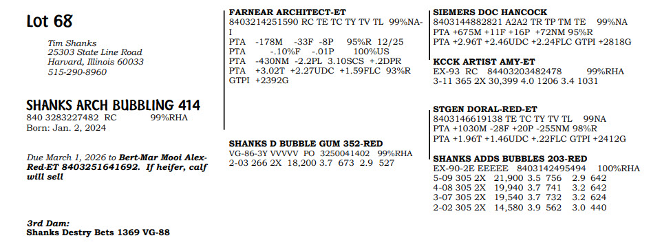 Due March 1, 2026 to Bert-Mar Mooi AlexRed-ET 8403251641692. If heifer, calf