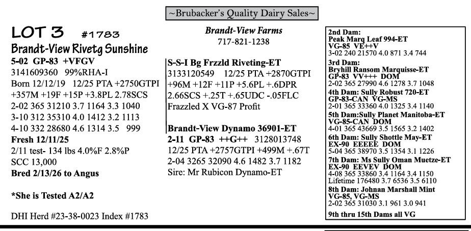 BRUBACKER'S FEBUARY Monthly Production Sale II