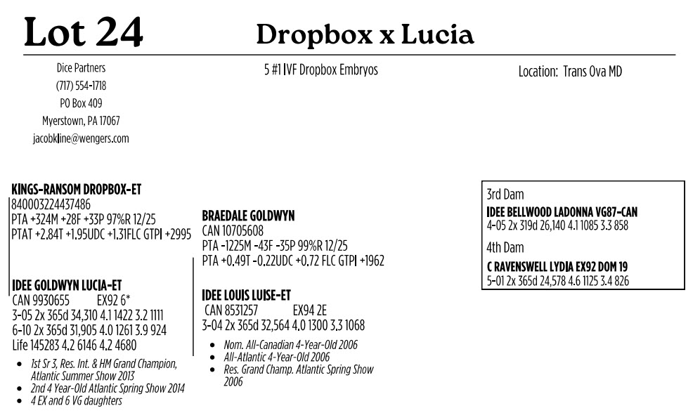 -Selling price is per Embryo or straw