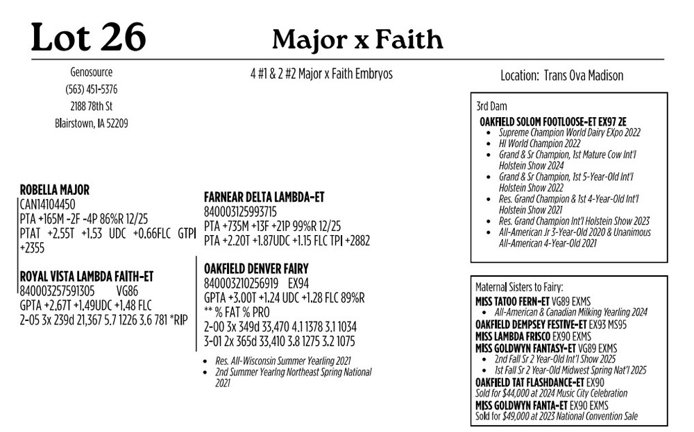 4#1 & 2#2 MajorxFaithEmbryos Location: Trans Ova Madison