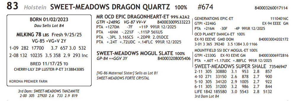 MILKING 78 LBS Fresh 9/25/25