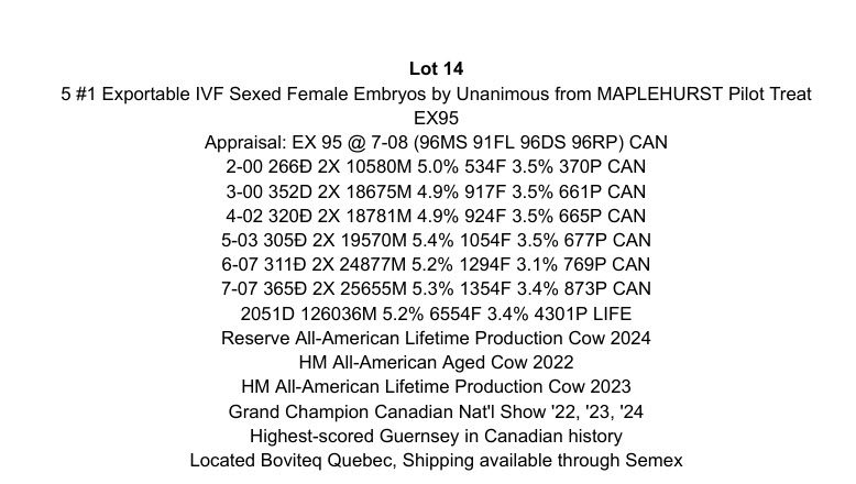 5 #1 Exportable IVF Sexed Female Embryos by Unanimous from MAPLEHURST Pilot Treat