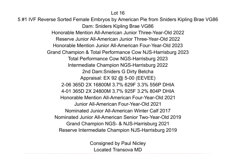 5 #1 IVF Reverse Sorted Female Embryos by American Pie from Sniders Kipling Brad VG86