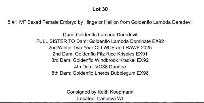 5 #1 IVF Sexed Female Embryo by Hinge or Hellion from Goldenflo Lambda Daredevil