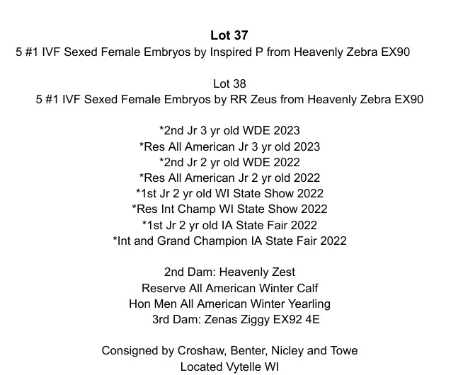 5 #1 IVF Sexed Female Embryos by RR Zeus from Heavenly Zebra EX90