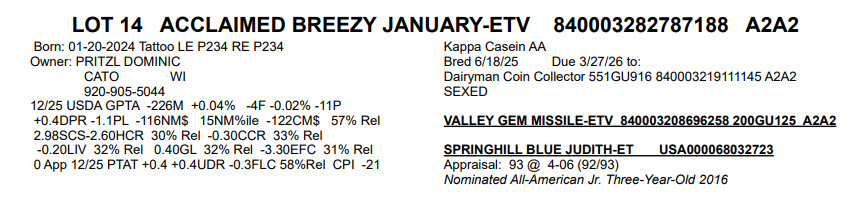 Bred 6/18/25 Due 3/27/26 to: